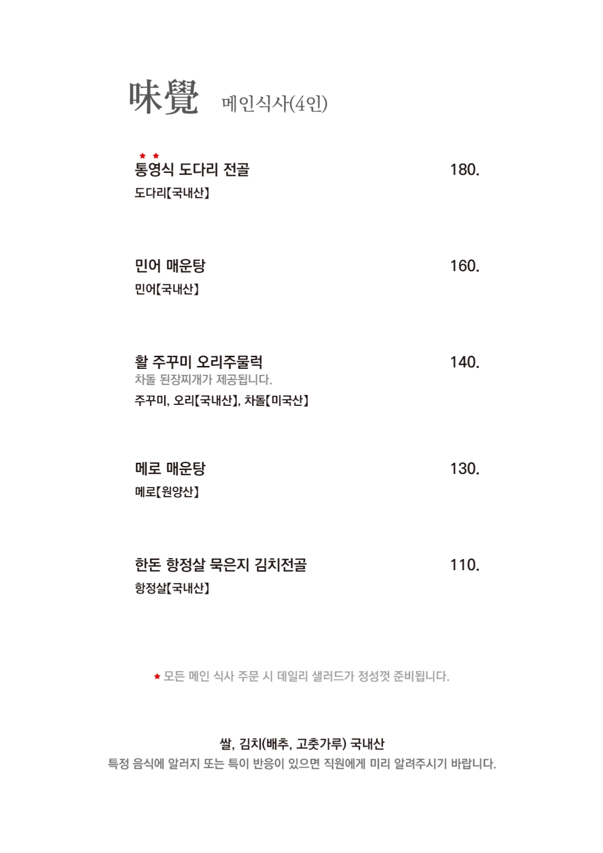 식음료 메뉴 안내